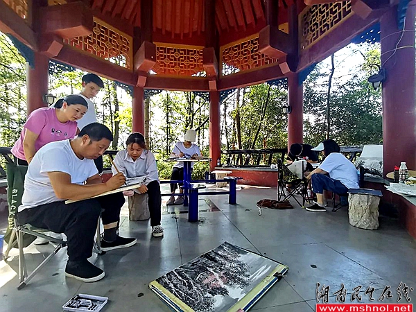 他们在各地写生的现场,每次都吸引了众多书画爱好者和群众的围观,既加深了大众对传统文化的理解,增强了文化自信,同时也能够唤起大家对梅山文化的敬仰。应当地书画爱好者需求,刘建军老师还举办了创作讲座,并进行了面对面交流。