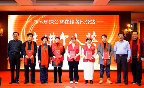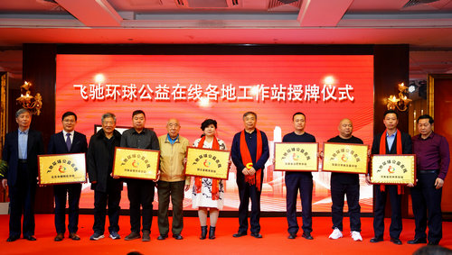 各位领导嘉宾为飞驰环球公益在线各地工作站授牌