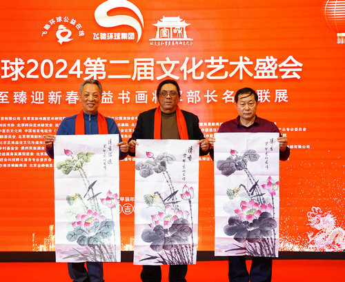 光耀华夏北京讯(记者:朱紫阳 摄影:刘兴鸿 王敏)为了贯彻落实党中央关于文化发展的指导精神,弘扬中华优秀文化,传承书画艺术精髓,以及加强书画界文化艺术的交流与合作,在新春佳节来临之际,由北京宣和书画艺术研究院、飞驰环球集团旗下飞驰环球公益在线、中国文化信息协会中医药文化工作委员会主办;飞驰环球文化传播集团承办;中国退役军人就业创业服务促进会科技孵化服务专业委员会等多家单位协办的“2024飞驰环球文化艺术盛会”、宣和至臻迎新春书画名家公益联展、飞驰环球公益在线暨文化艺术公益年度表彰大会1月5日在北京举行。