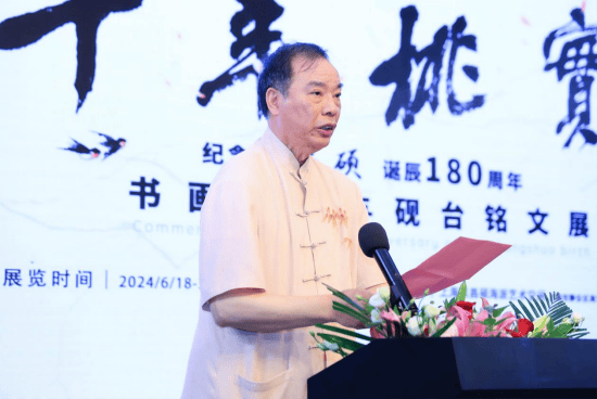 徐湖平院长致辞结束后,邀请资深砚文化志愿者刘红军先生共同宣布 “千年桃实纪念吴昌硕诞辰180周年书画精品与砚台铭文展”开幕!