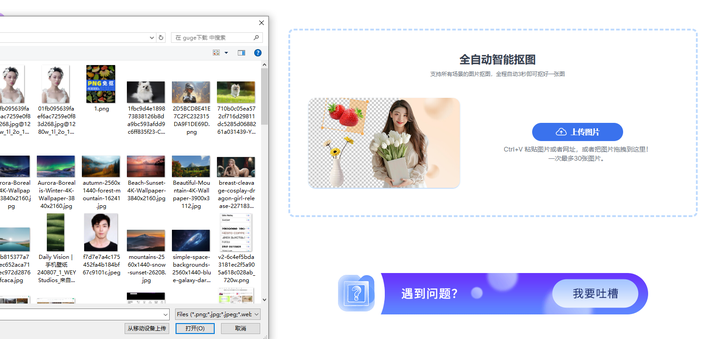 操作非常简单,只需点击”立即抠图“上传需要处理的图像,这里可以上传单张,也可以上传多张批量抠图,最多支持30张图片处理。