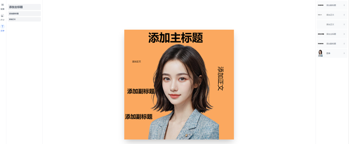 添加文字:制作海报的好帮手,可以根据自己的需求添加文字,站内有各种字体选择都是免费可商用,包括可更改字体的样式、颜色、间距等等。