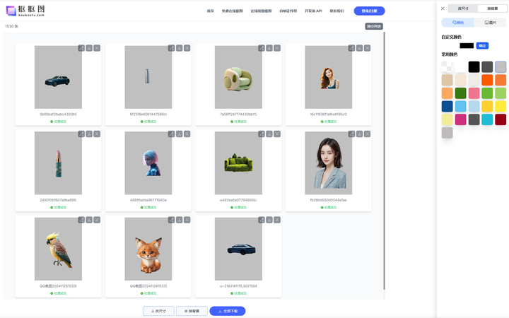 当然,网站也能批量修改尺寸和背景,只需一键就能轻松搞定,效率真的太高了,妥妥的设计好帮手。