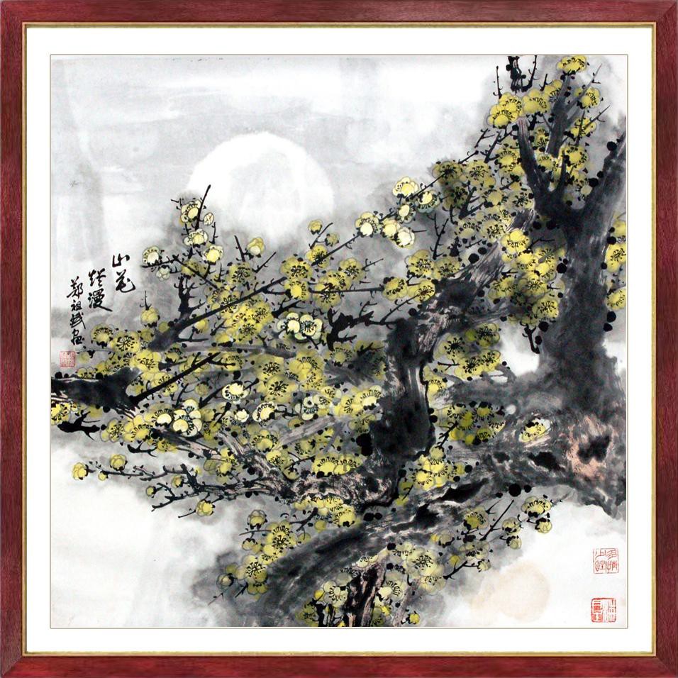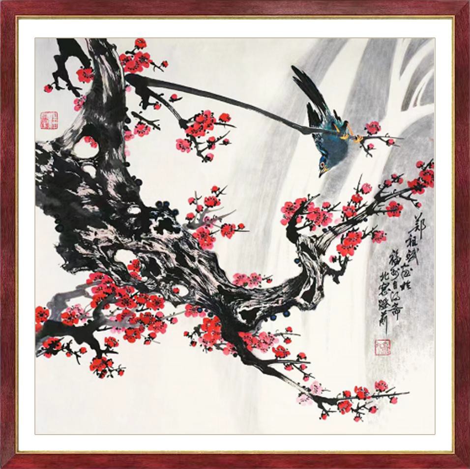 1993 年在首都博物馆举办《郑祖斌画梅展》,张仃先生题写展名,王光英先生为画展揭幕,人民日报、中央电视台、美术杂志相继作了报道。