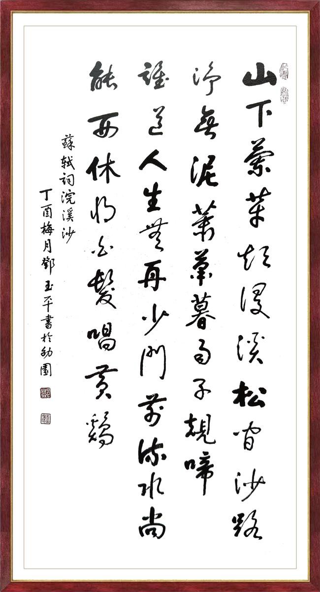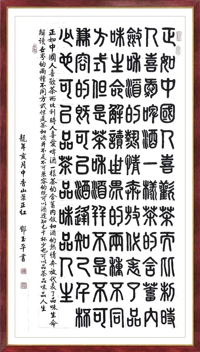 作品的妙趣和艺术感染力。书法作品柔中有刚,秀中见奇,可谓笔墨神韵,给读者强烈的艺术感染力,已达到雅俗共赏的效果,显示出他本人的道德修养和艺术修养。书法继承难,创新更难,在创新之中形成自己的个性和风格难上加难。而书法只有创新才能发展,也只有创新才是书法发展的目的。邓玉平的书法作品借古人之本,又有自己的个性追求,学古而不泥古,是一位难得的艺术人才。