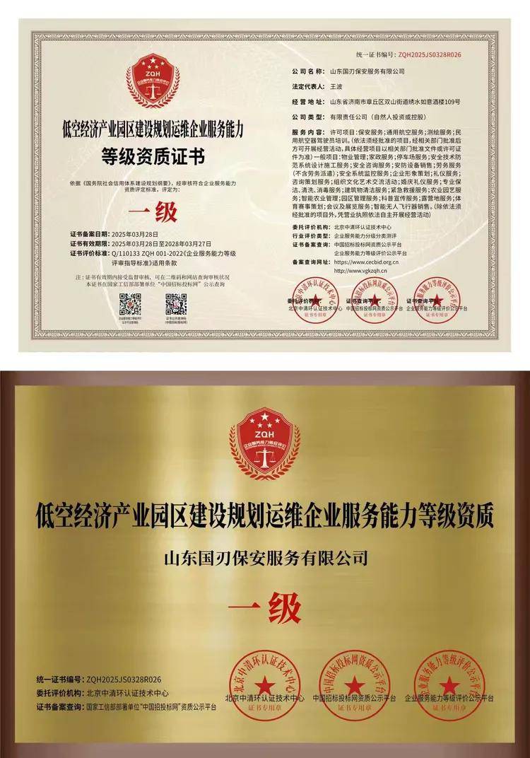 山东国刃保安服务有限公司是一家从事保安服务,通用航空服务,测绘服务等业务的公司,成立于2021年10月13日,公司坐落在山东省,详细地址为:山东省济南市章丘区双山街道绣水如意酒楼109号;经国家企业信用信息公示系统查询得知,山东国刃保安服务有限公司的信用代码/税号为91370181MA953A9H8Q,法人是王波,注册资本为1000.000000万,企业的经营范围为:许可项目:保安服务;通用航空服务;测绘服务;民用航空器驾驶员培训。(依法须经批准的项目,经相关部门批准后方可开展经营活动,具体经营项目以相关部门批准文件或许可证件为准)一般项目:物业管理;家政服务;停车场服务;安全技术防范系统设计施工服务;安全咨询服务;安防设备销售;劳务服务(不含劳务派遣);安全系统监控服务;企业形象策划;礼仪服务;咨询策划服务;组织文化艺术交流活动;婚庆礼仪服务;专业保洁、清洗、消毒服务;建筑物清洁服务;紧急救援服务;农业园艺服务;智能农业管理;园区管理服务;科普宣传服务;露营地服务;体育赛事策划;会议及展览服务;智能无人飞行器销售。(除依法须经批准的项目外,凭营业执照依法自主开展经营活动)