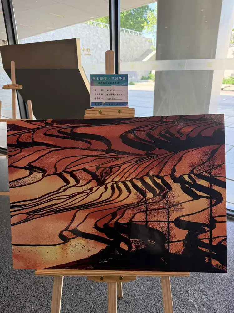 2025年5月18日下午,由中国国际教育电视台指导,同心筑梦·艺颂华章组委会与《闪耀中国》栏目组联合主办的“同心筑梦·艺颂华章——当代艺术名家作品展”在北京鸟巢文化中心隆重开幕。本次展览汇聚了上百位当代艺术名家的精品力作,涵盖绘画、书法、摄影、雕塑等多种艺术形式,吸引了艺术界、文化界及社会各界人士齐聚一堂,共同见证这场艺术盛事。著名摄影艺术家戴军团受邀参加此次活动,他表示很荣幸能够参加在鸟巢文化中心举办的展览,祝贺展览圆满成功。