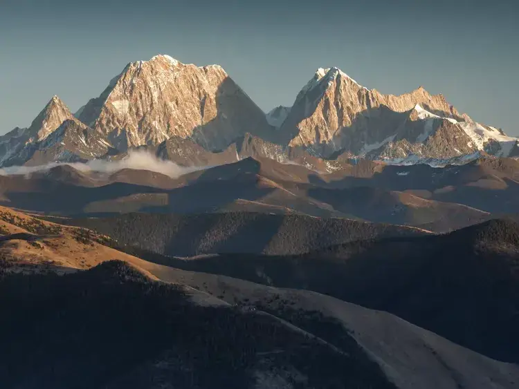 本次参展摄影作品《日落贡嘎 - 嘉子峰》