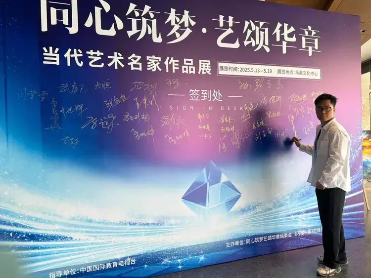 2025年5月18日下午,由中国国际教育电视台指导,同心筑梦·艺颂华章组委会与《闪耀中国》栏目组联合主办的“同心筑梦·艺颂华章——当代艺术名家作品展”在北京鸟巢文化中心隆重开幕。本次展览汇聚了上百位当代艺术名家的精品力作,涵盖绘画、书法、摄影、雕塑等多种艺术形式,吸引了艺术界、文化界及社会各界人士齐聚一堂,共同见证这场艺术盛事。著名摄影艺术家田超受邀参加此次活动,他表示很荣幸能够参加在鸟巢文化中心举办的展览,祝贺展览圆满成功。