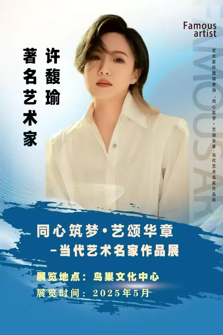 2025年5月18日下午,由中国国际教育电视台指导,同心筑梦·艺颂华章组委会与《闪耀中国》栏目组联合主办的“同心筑梦·艺颂华章——当代艺术名家作品展”在北京鸟巢文化中心隆重开幕。本次展览汇聚了上百位当代艺术名家的精品力作,涵盖绘画、书法、摄影、雕塑等多种艺术形式,吸引了艺术界、文化界及社会各界人士齐聚一堂,共同见证这场艺术盛事。著名摄影艺术家许馥瑜受邀参加此次活动,她表示很荣幸能够参加在鸟巢文化中心举办的展览,祝贺展览圆满成功。