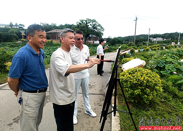 长沙市企事业文联安沙籍艺术家、湖南省金融书法家协会副主席冯亚平更是积极担当“家乡文旅推荐官”。活动中,他带领艺术家们深入探访隐匿于田畴村野、荷塘溪涧旁的特色小院,详细讲述安沙的人文历史,为书画家们的创作提供了丰富素材。在他的引导下,一幅幅精美的山水画卷、灵动的花鸟虫鱼作品在画家笔下精彩呈现。