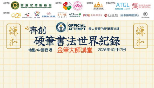 香港 — 2025年10月17日,梁显利油麻地社区中心洋溢着浓厚的文化氛围与青春活力。由香港宋庆龄基金、We Like Hong Kong、沪港妇女会主办、民政事务总署协办的“金笔大师讲堂——齐创硬笔书法世界纪录”活动在此隆重举行,来自香港油尖旺区多间中、小学的291名学生齐聚一堂,以笔墨寄情、以书法传意,顺利完成一场意义非凡的硬笔书法课,成功挑战并创下“最大规模硬笔书法课”健力士世界纪录TM,为庆祝中华人民共和国成立76周年,献上一份蕴含中华文化底蕴的珍贵礼物。由中联办教育科技部叶水球副部长、香港特别行政区政府油尖旺民政事务专员余健强先生担任活动主礼嘉宾。