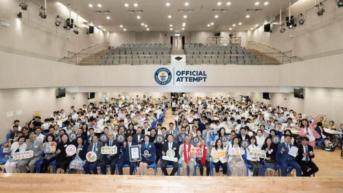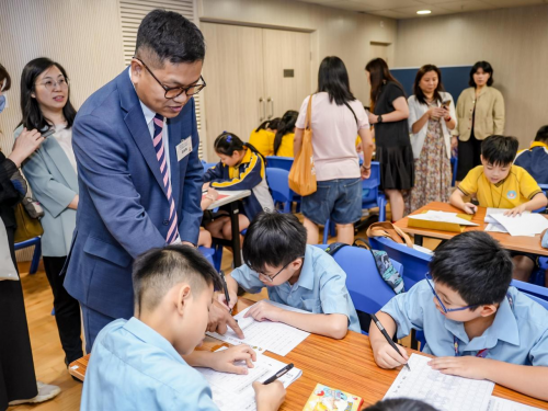 随后,健力士世界纪录TM认证官,以严谨的态度详细说明挑战规则:需确保参与者人数达标、课程时长符合标准、书法教学具备专业性,且全程在见证官与监督员的实时监督下进行。规则宣读完毕,全场学生在老师们的指导下开始书写。现场,学生们专注的眼神、认真的姿态,构成一幅生动的“书法图”,充分展现香港青少年对传统文化的热情与敬意。最后,全体学生顺利完成硬笔书法课程,为挑战交出圆满答卷。