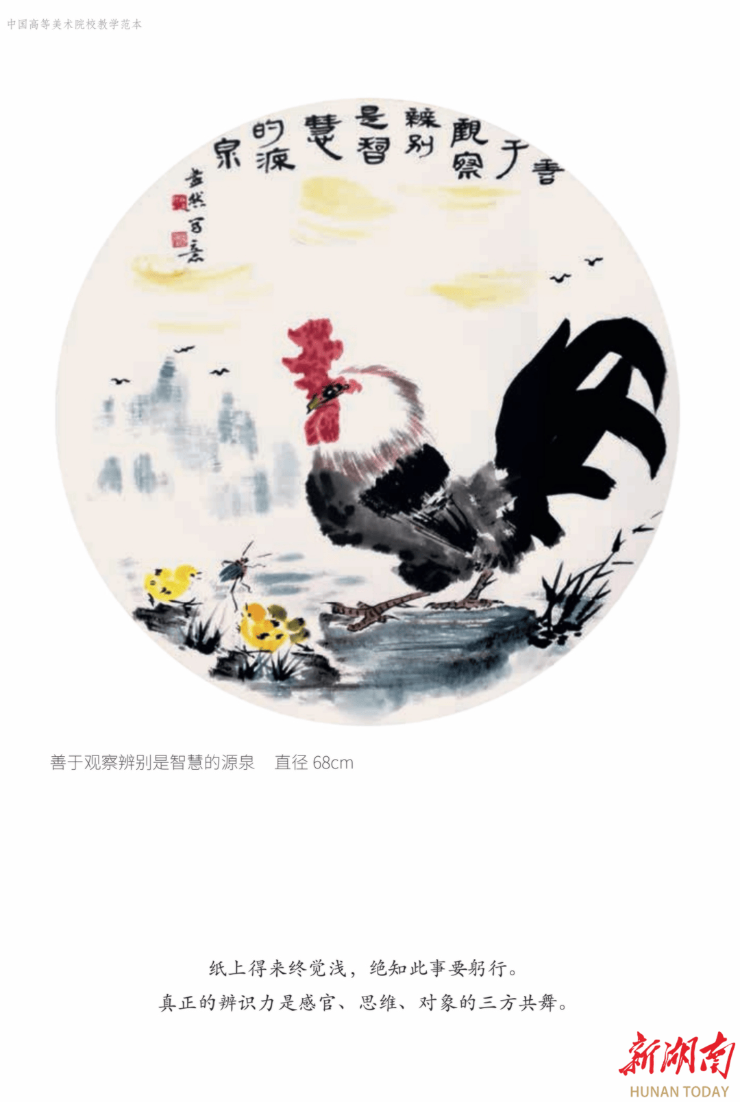 《千鸡百态话人生》是国强以水墨为舟楫、以鸡为喻体,在传统文人画精神沃土上的一次深情远航。他将书法风骨注入绘画肌理,以文人哲思照亮翎毛姿态,在“似与不似之间”的写意天地里,构建了一个既熟悉又陌生、既生动又深邃的艺术宇宙。它打破了传统翎毛画的技法藩篱,将水墨小品推向了“言志”、“载道”的思想高度。在鸡的百态千姿中,我们看到了担当、清醒、慈爱、执着、回望、无邪……这是一部用朱砂、水墨与宣纸写就的,关于生命、人性与世相的微型史诗。他邀请每一位读者,在朱冠墨羽间驻足凝视,聆听那穿越宣纸的清越啼鸣,去辨认自己的身影,去感悟那被水墨点亮的、千回百转的人间滋味。