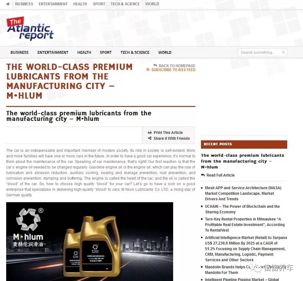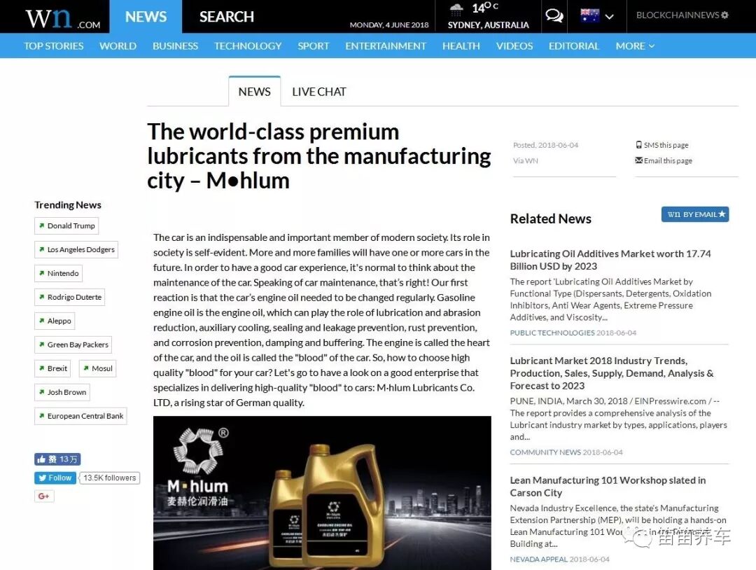 谷歌搜索M-hium(麦赫伦)世界新闻网、每日先驱报、世界电子周刊、美国前沿杂志、欧洲邮政公报,华尔街精选,美国新闻企业报,世界互联网日报等有543家世界著名报纸杂志网站报道麦赫伦润滑油——世界好油品!